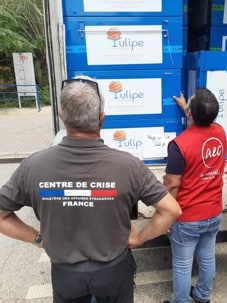 Grâce aux donations des entreprises de santé adhérentes, nous préparons des kits dans des malles cantine. Ils sont ensuite mis à la disposition des organisations bénéficiaires opérant sur le terrain en moins de 24 heures, car chaque minute compte en ces instants critiques.
